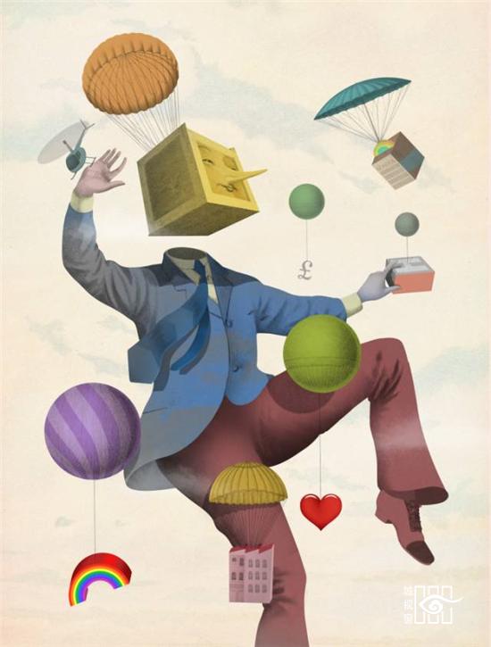 英国插画师Brett Ryder一直非常喜欢医学期刊、老式广告板、摩托车介绍手册中的插图。他的画就像是这些插图的结合体,听着好像风马牛不相及,却在Brett的画里和谐共存。他的客户包括农夫山泉、时代、福布斯等等。