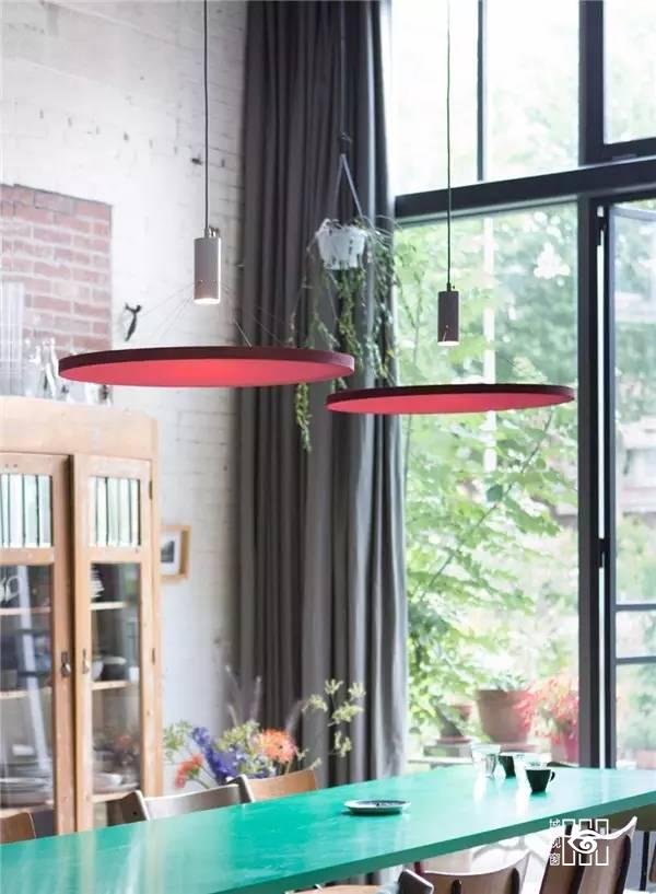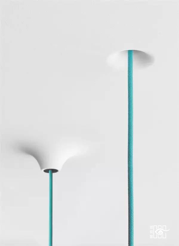 该吊灯就像悬浮在工作台上一朵盛开的花,蛋白石塑料材料的灯罩使主体轻量化设计,光的半径是可变的,得益于花萼般的简单机制,可不断展开以调整亮度。