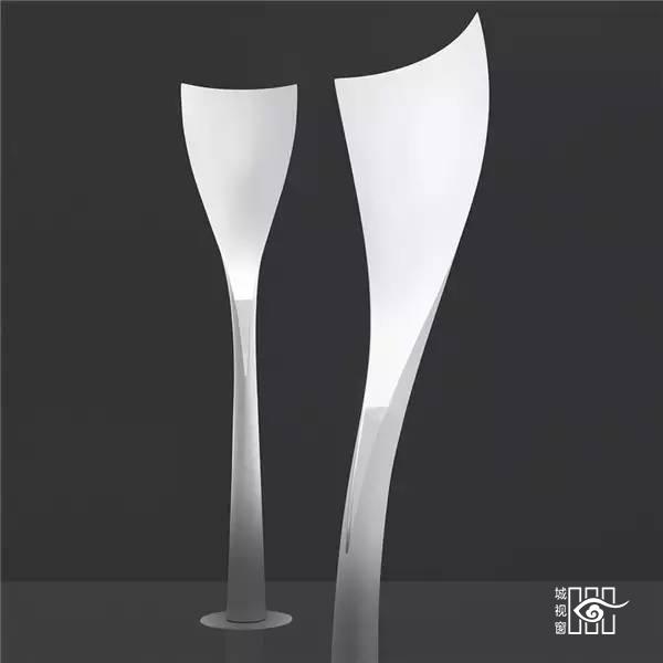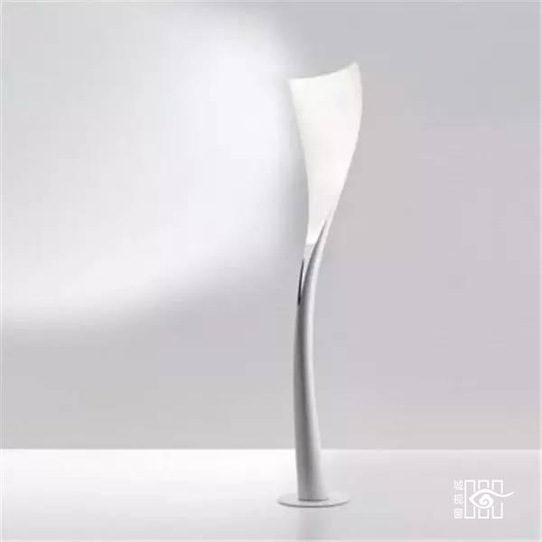 该落地灯的发光框架是由玻璃纤维组成,很轻且可持续利用。灯杆可用作反射器,加上一个专用的光学装置,实现高效率的漫射光。