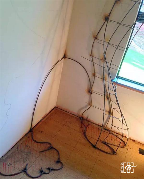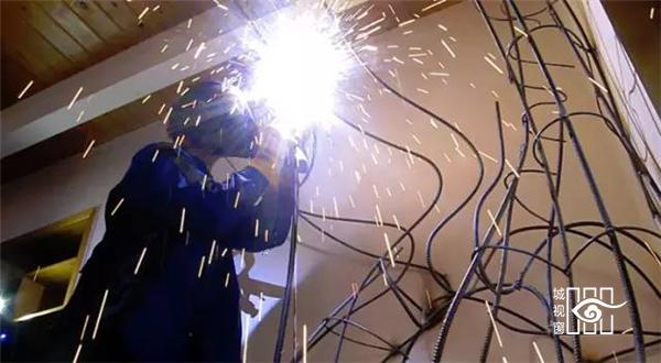 用钢条焊出树的骨架...