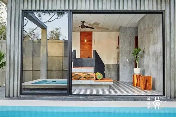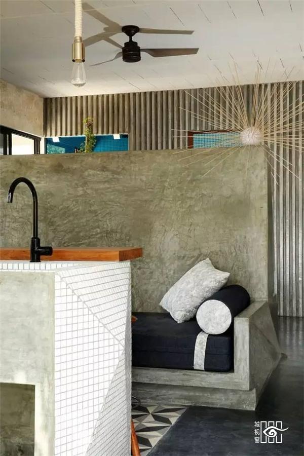 外观和室内墙面采用平滑的水泥,这也是备受欢迎的简约时尚风格,厨房、卧室一应俱全。