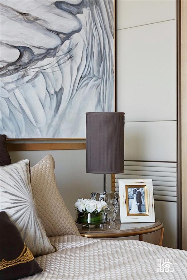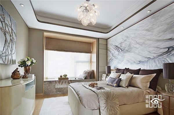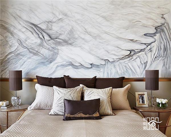 卧室主背墙面也是艺术抽象的翅膀图案,飞行潇洒自如,似乎给大海带来无限的生命力和无穷魅力,并且选用高贵内敛的蓝白色灰色,更能影射出一种宁静安然的穿透力,让空间散发优美雅致又有精神的力量。