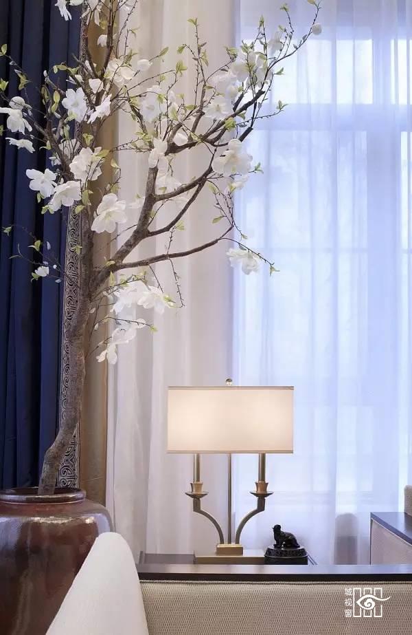 将留白手法运用在新中式家居的设计中,则减少了空间扑面而来的压抑感,并将观者的视线顺利转移到被留白包围的元素上,从而彰显了整个空间的审美价值。