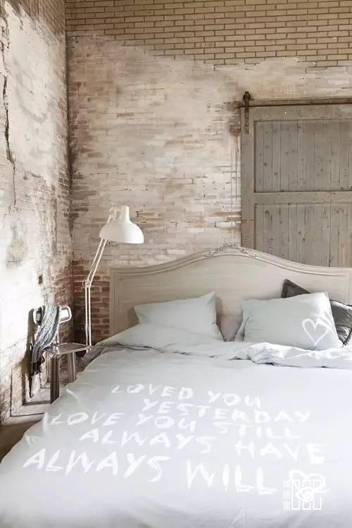 卧室大概是我们一生中待得最久的地方了,热爱生活的人,怎么能没有一个非常舒适的卧室呢?许多艺术家都喜欢砖墙的质感,加上干净的色调,简直绝配。