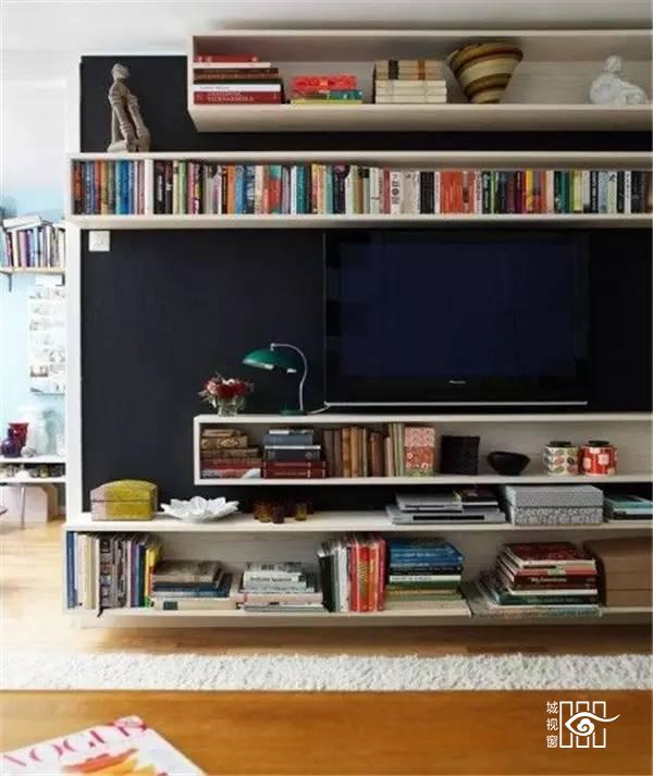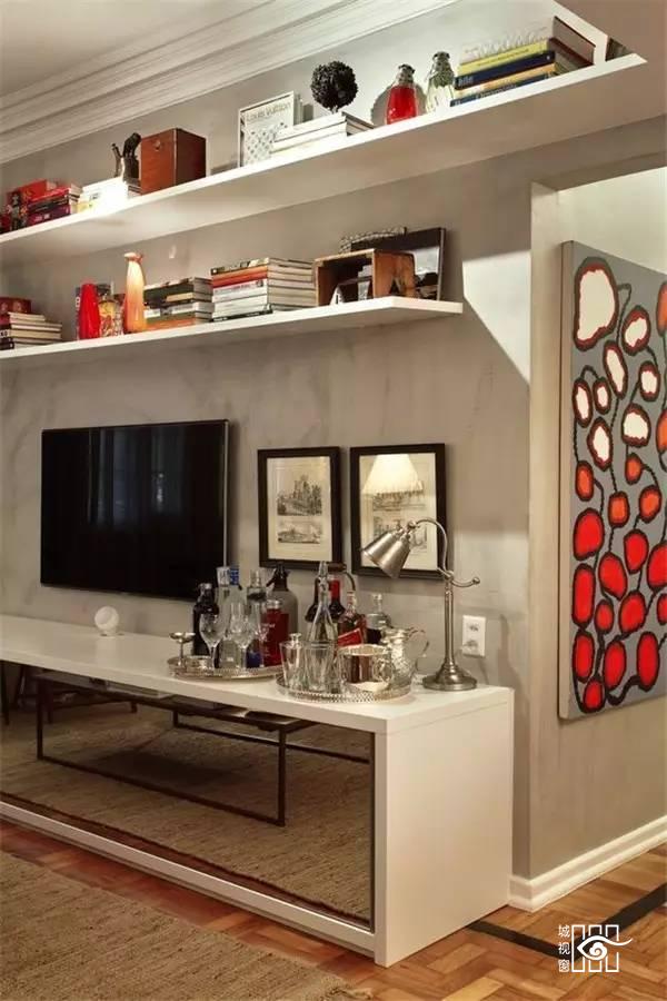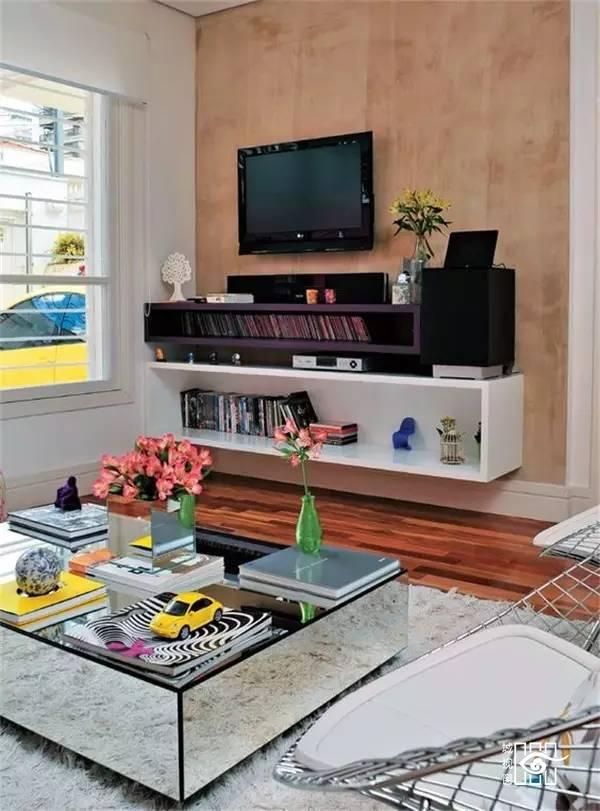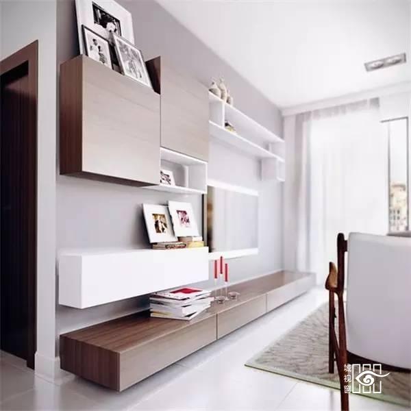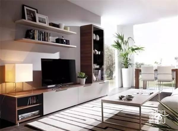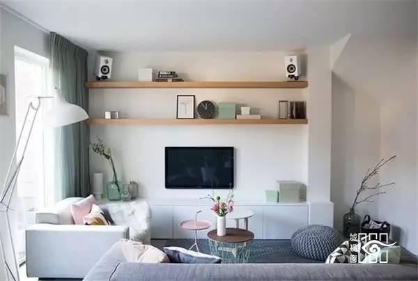 小户型家庭因为没有足够的空间放置收纳柜,各种东西的胡乱堆放只会让客厅显得凌乱不堪。而一面实用又美观的电视背景墙,就能利用电视柜及墙面的搁架等物件,收纳起各种零碎杂物,让客厅空间马上干净清爽起来。