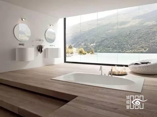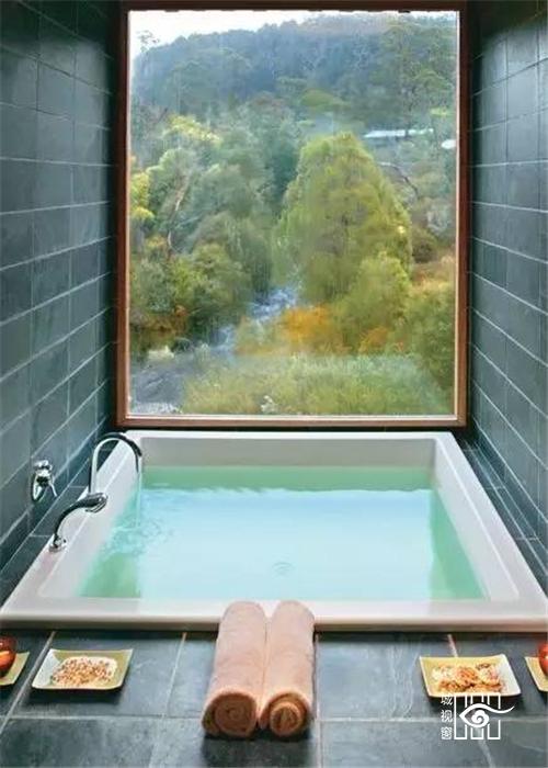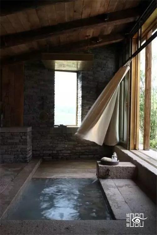 下沉式的浴缸设计很有游泳池的感觉,旁边的出水口也设计的非常精巧。