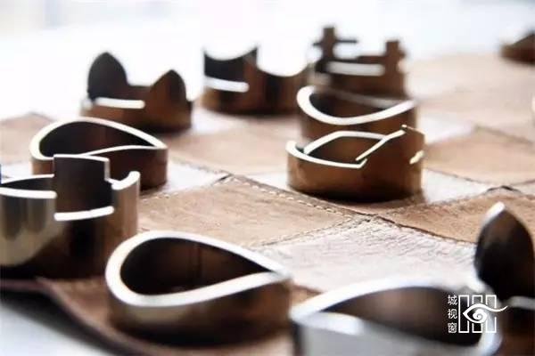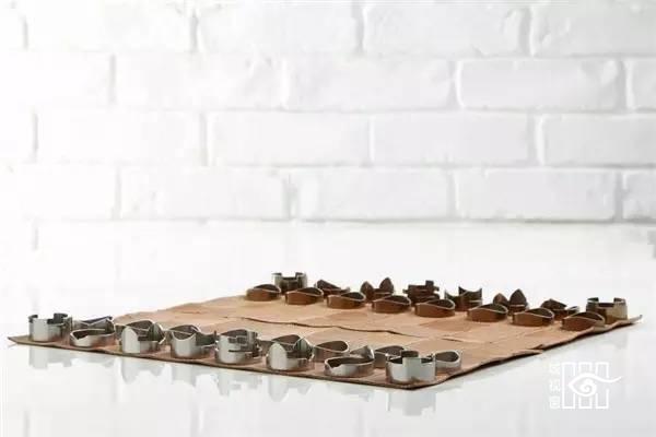 就算对国际象棋无感,这个创新设计也值得你拍手称赞。由Nick Rawcliffe设计的国际象棋棋盘,是他别出心裁地用意大真皮皮革手工剪裁和缝制而成的。设计师的巧妙创意使得柔韧的皮革棋盘可以轻便的随手卷起来;而原本碎片化的环形式金属象棋,也可统直接串联和套在卷起来的棋盘上,代身圆筒包装起到收纳和固定棋盘的作用。