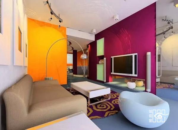 客厅的“主题墙”就是指客厅中最引人注目的一面墙,一般是放置电视、音响的那 面墙。在这面“主题墙”上,设计师采用各种手段来突出主人的个性特点。