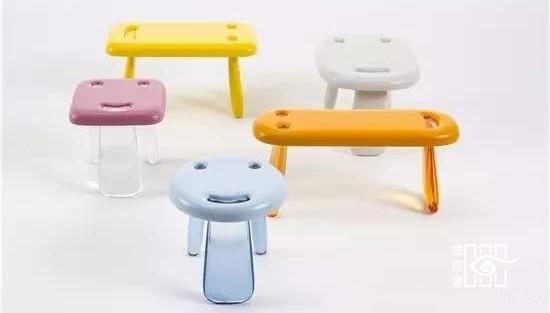 Nendo创始人Oki Sato基于人的笑脸设计了这些造型不一的彩色凳子,两只眼睛和微笑着的嘴巴下面连接了塑料的凳子腿。