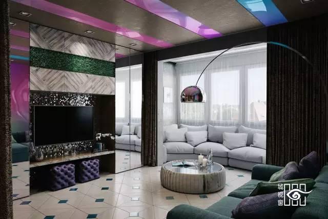 Alex Koretsky and Viktoria Pashinskaya改造这个丰富多彩的公寓比实际上大了许多,而现代感表面能“反光”的墙面和茶几又是扩大空间的妙招。