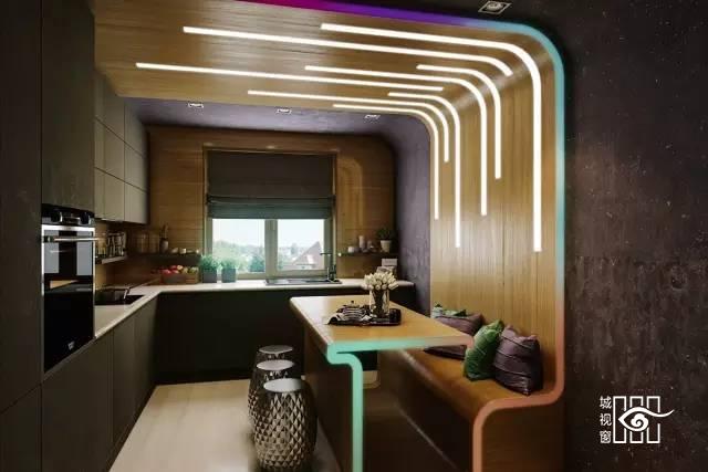 设计师再一次利用“照明”来博取眼球,这个美丽早餐吧台虽然不大但却能容下6个人,早餐吧台也是越来越多年轻人的选择。