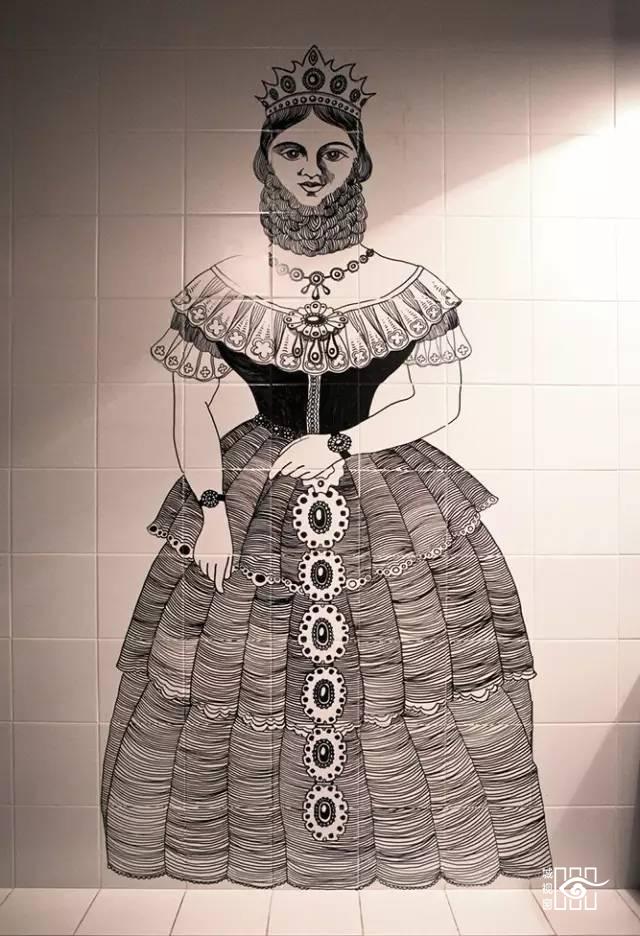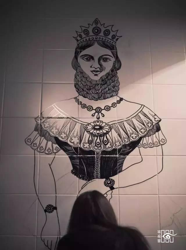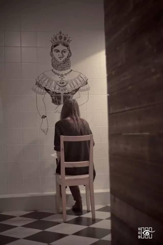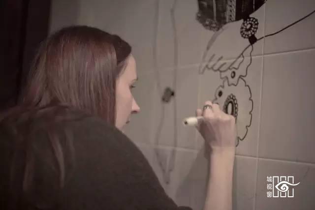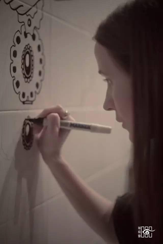 卫生间墙壁的画是这位美女一笔一划勾勒出来的,也是花尽了心思。