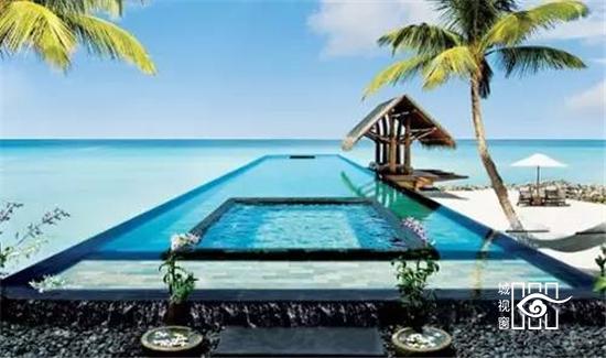 瑞提拉岛唯一酒店号称马尔代夫度假村之王,这里的无边泳池只许成年人进入,镶嵌在蒂凡尼蓝色海天之中的泳池长达30米,泳池的一端嵌有石雕床,所以当你置身无边泳池中,视角就如同在一个大型舰艇上一样壮观。