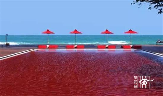不过别担心,像平常一样下水游泳就好,因为这颜色并非染色而成,而是来自泳池壁的红色瓷砖。