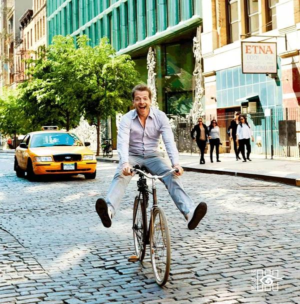 John Derian在他的“总部驻地”纽约东村的大街上骑一辆老式自行车。他的“破旧”设计风格融合了各种淘回的或生满铜绿的旧物,为纽约时尚增添了别具一格的情调。