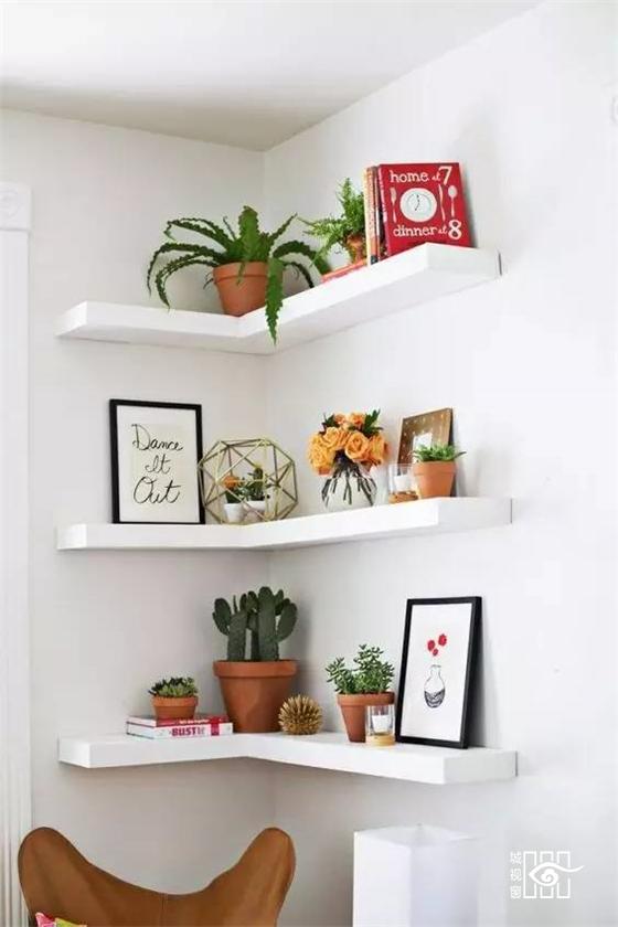 墙角用作收纳和陈列,