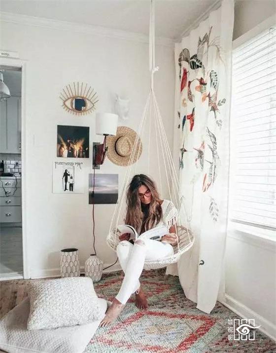 喜欢一个人在吊椅上看看书,