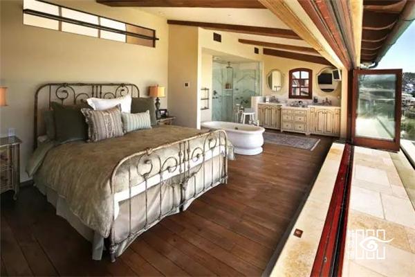 这栋位于加州的住宅装饰中加入许多具有代表性的地中海风格元素,用室内装饰明亮、大胆、色彩丰富、简单的特性拉近了人与自然的距离,将大自然的气息带入到家装设计中。