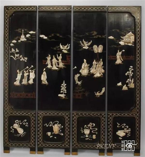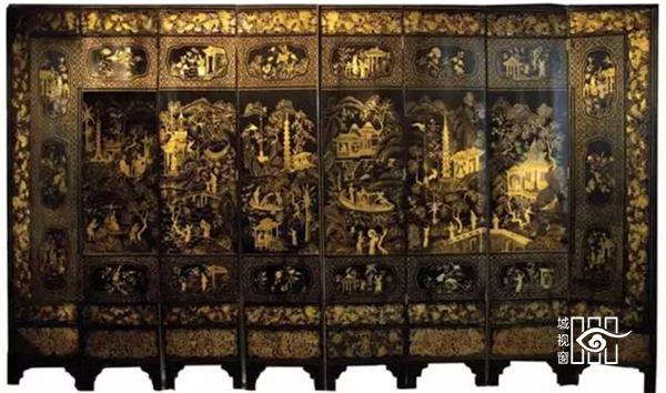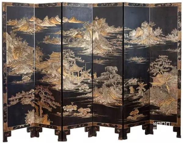 中国屏风最初是在皇宫大殿中用来分隔屋内空间的。一个木结构框架,可以有几种不同材料的木板,比如雕漆、搪瓷或者纺织物,通常漆成金色,上面镶嵌着宝石和贝壳。古代屏风大体可分为两种:一种留在国内,一种用于出口,后者就是以前从印度港运往欧洲的乌木屏风。而前者在中国现在数量稀少,十分珍贵,其中最令人渴慕的是清康熙年间(1662-1722)的样品,估价在100万欧元以上。
