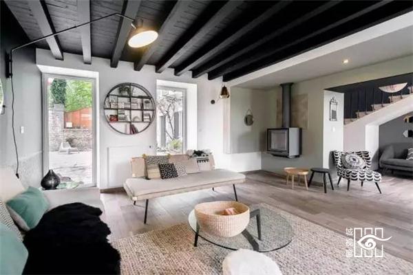 客厅的中巧妙的空间布局以及温馨的处理效果都运用得恰到好处。时尚的软装搭配让客厅变得有温度,圆形的钢制书架让整个空间都充满质感。