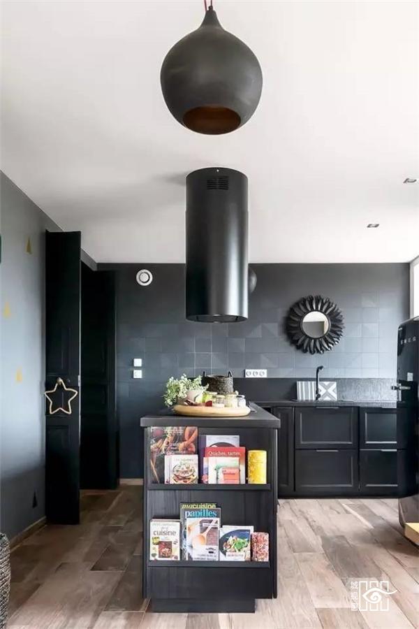 墙壁上的装饰画以及不同颜色的贴纸让单调的空间变得充满趣味,也更加多彩。不同纹理的瓷砖让空间更加有立体感。