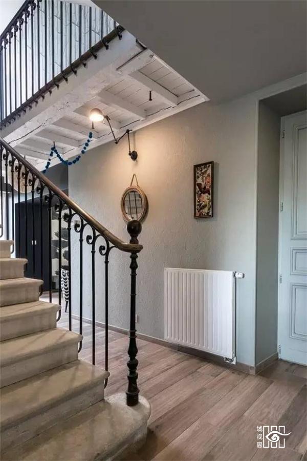 大理石台面的楼梯与钢制扶手,再加上墙壁上丰富的装饰品点缀,整个住宅的每个角落都弥漫着浓厚的艺术气息。
