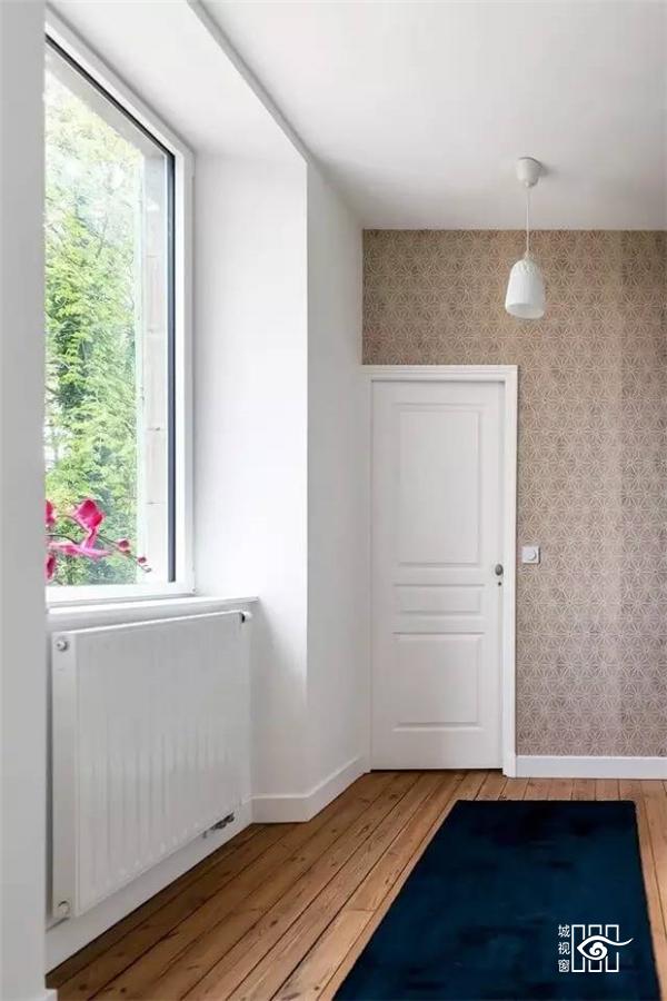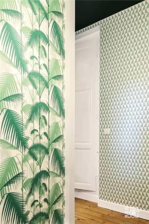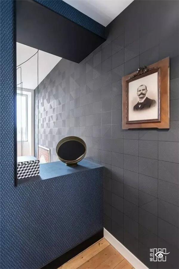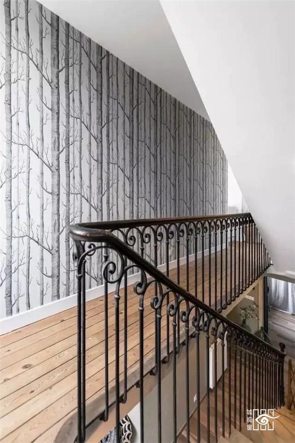 墙纸的运用也是这座住宅设计的一大特点。色彩清新的墙纸给整个住宅都带来了活力,同时也起到缓解暗色系所带来的压抑感的作用。