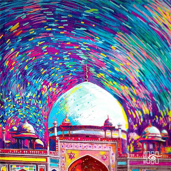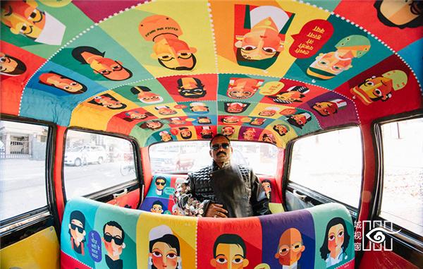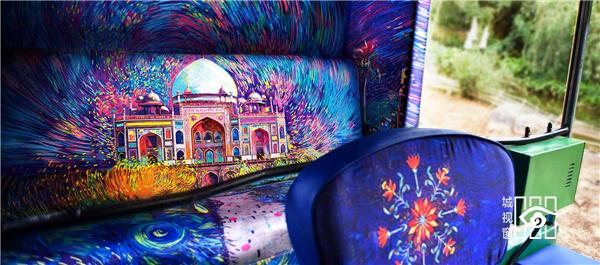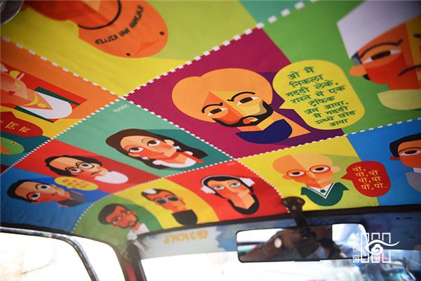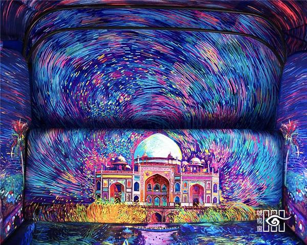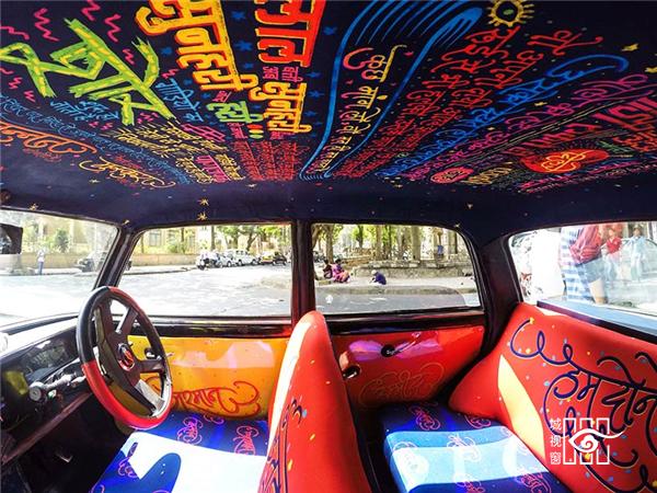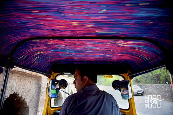 色彩艳丽的图案充满了出租车的内部空间,彩色图案勾勒出一副抽象星空,笼罩在游客们的头顶上。“Tasavvur”在乌尔都语中的意思是“想象力”,该作品将色彩、笔划以及和图案元素结合在一起,从而创作出一道令人为之动容的景观,同时也展现了印度城市旧德里的精髓。