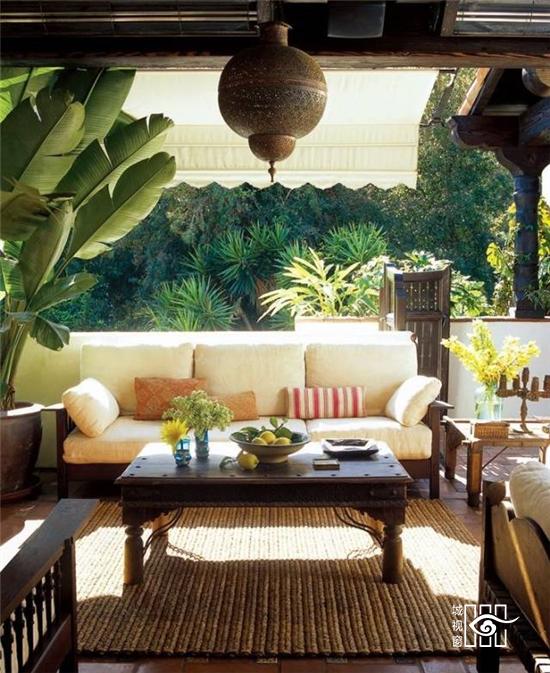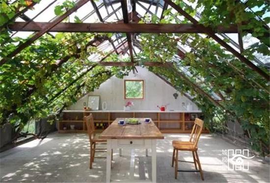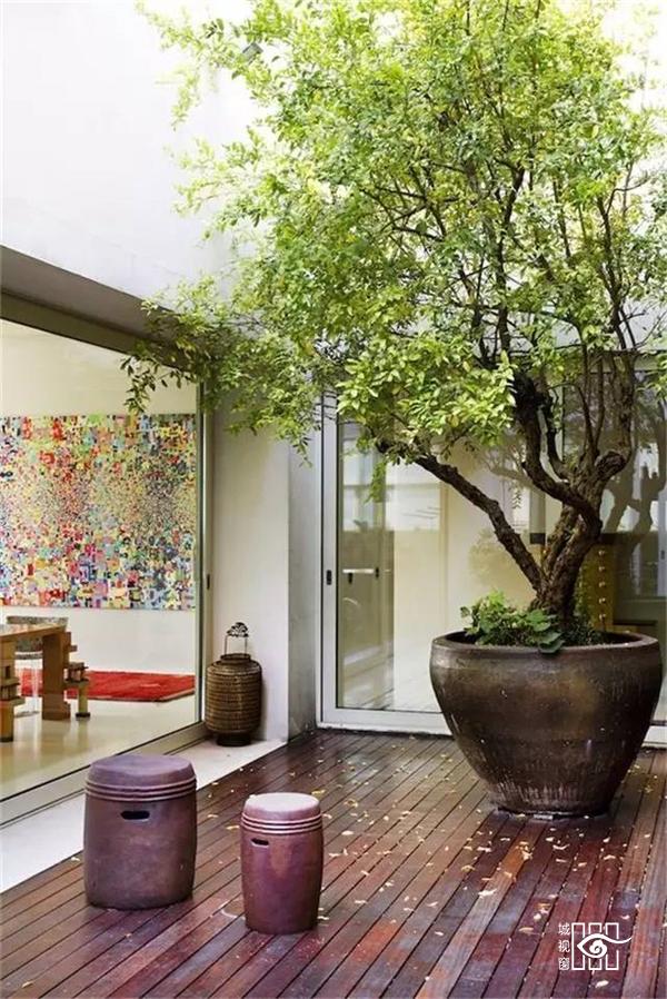将绿植珍藏,闲坐于屋内,品茶赏景