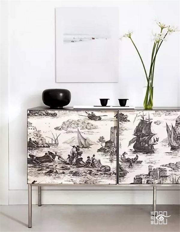 很多北欧人喜欢给自己的家具漆个新颜色,最近他们又迷恋上了给家具贴壁纸。比上漆方便,不容易搞脏家里,而且图案选择更多,更容易释放他们无处安放的创造力。
