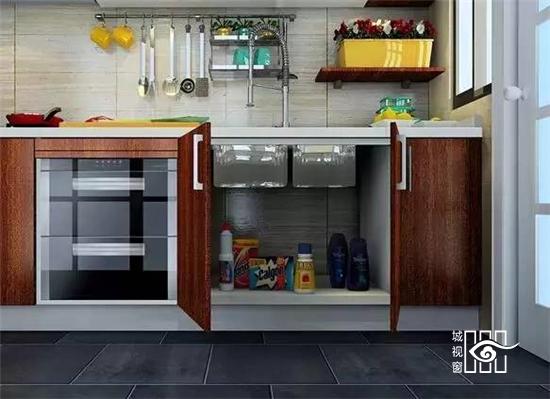 水槽下面的柜子,收纳常用洗涤剂、洗菜盆等物品。