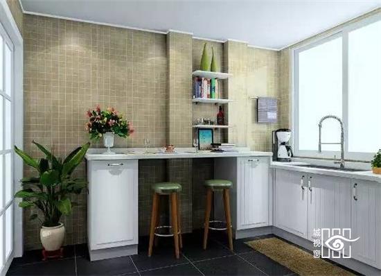 马赛克的瓷砖,可以打破单调,丰富厨房的层次感。另外,由于烹饪的时候容易溅出油污等脏污,马赛克瓷砖没那么容易显脏。
