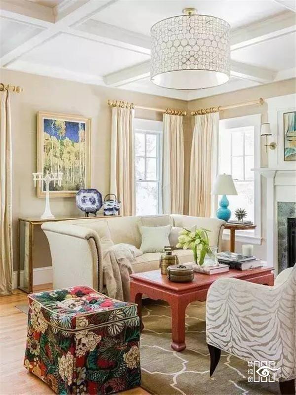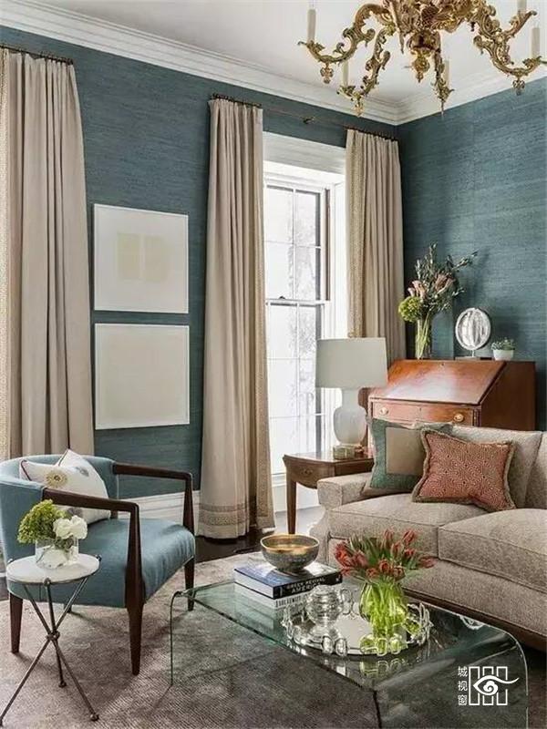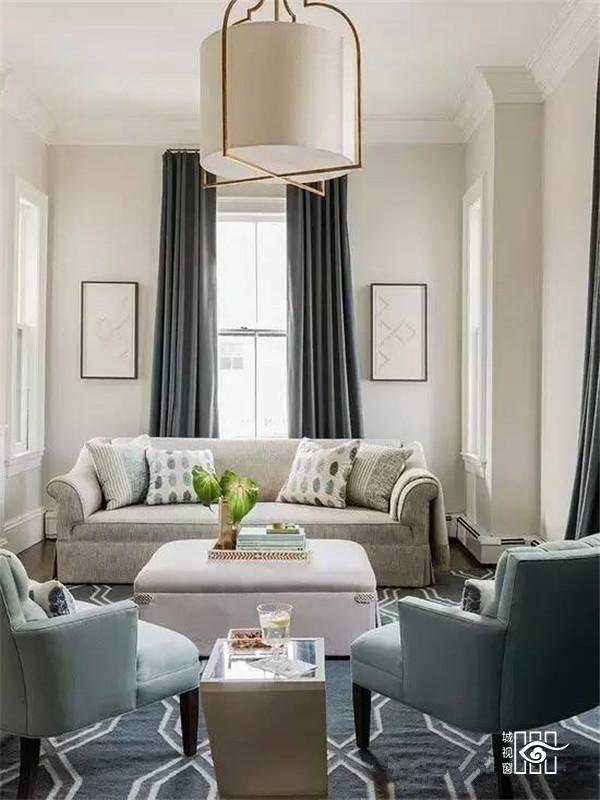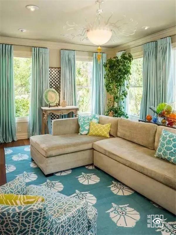 次色调的意思就是除了你家墙壁和地板的大片色块之外,你能注意到的第二种色调。次色调一般来自那些带显著色彩或者独特图案的中小型物件,比如茶几、地毯、台灯、靠垫或者其他装饰物。沙发体积太大,而且家庭选择的颜色都偏中性色,所以不太作为次色调的来源。如果这些物件提供了两三种不同的次色调,那窗帘的颜色到底应该和谁保持一致,就要看具体情况了。