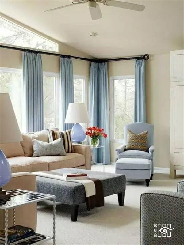 客厅窗帘颜色的选择还应注意层次与装饰性,要与主人身份的协调,得体、大方、明亮、简洁。