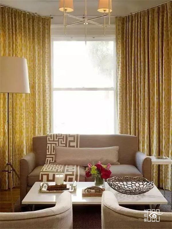 首先要考虑与墙体、家具、地板等的色调是否协调。客厅选择暖色调图案的窗帘,能给人以热情好客之感。