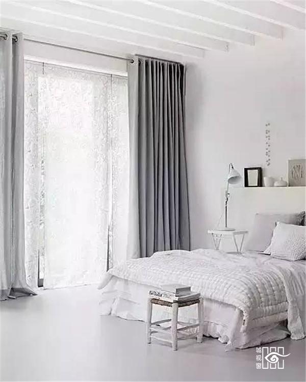 △带点灰度的白墙其实很时髦又亮堂,如果你家是这种墙的话妥妥地上浅灰色窗帘。