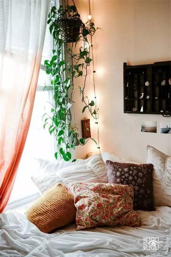 △挂上一棵绿植,简单清爽的窗帘,此刻显得格外慵懒。
