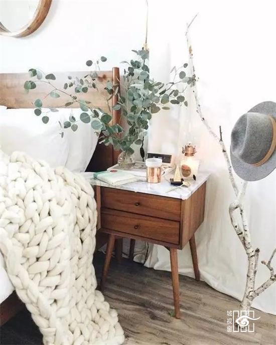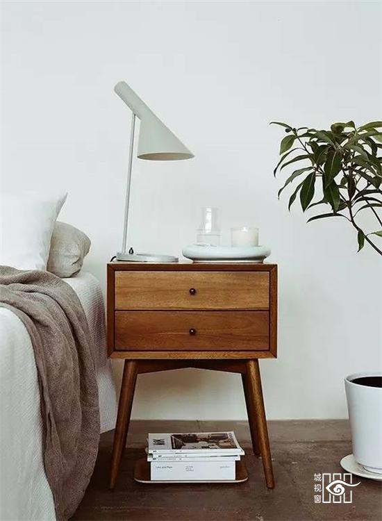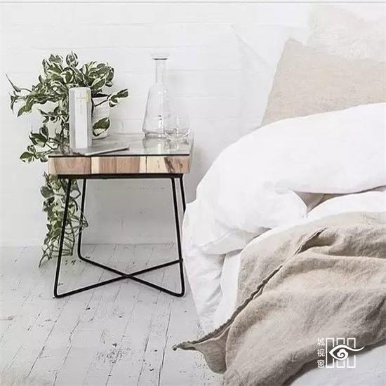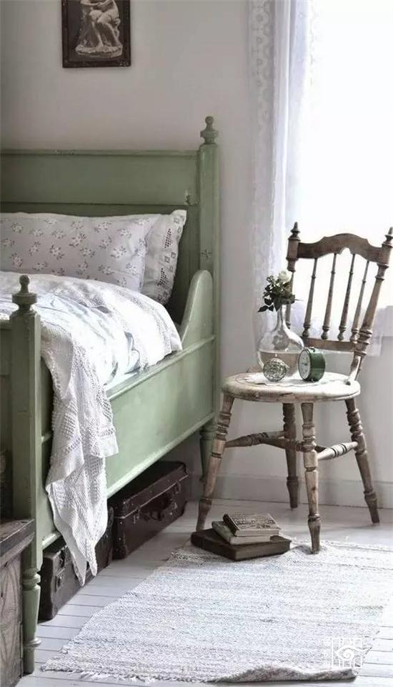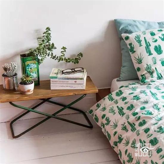 低矮的床头柜配上绿色的支脚,带来一种田园风