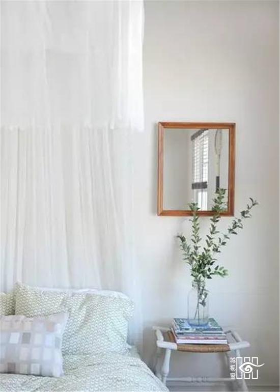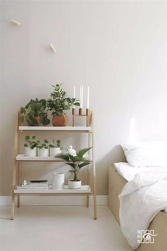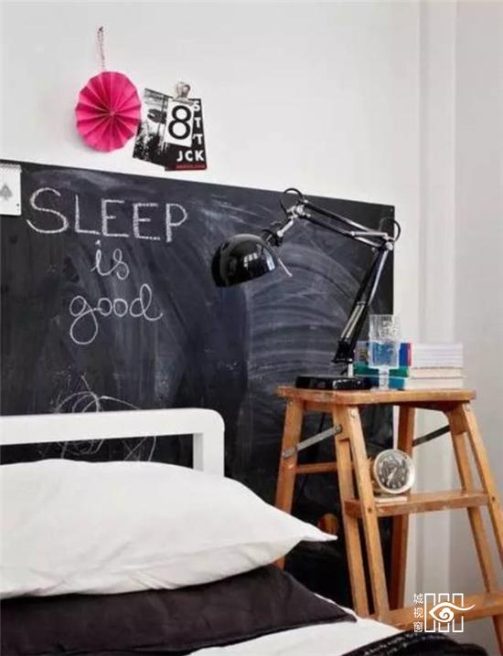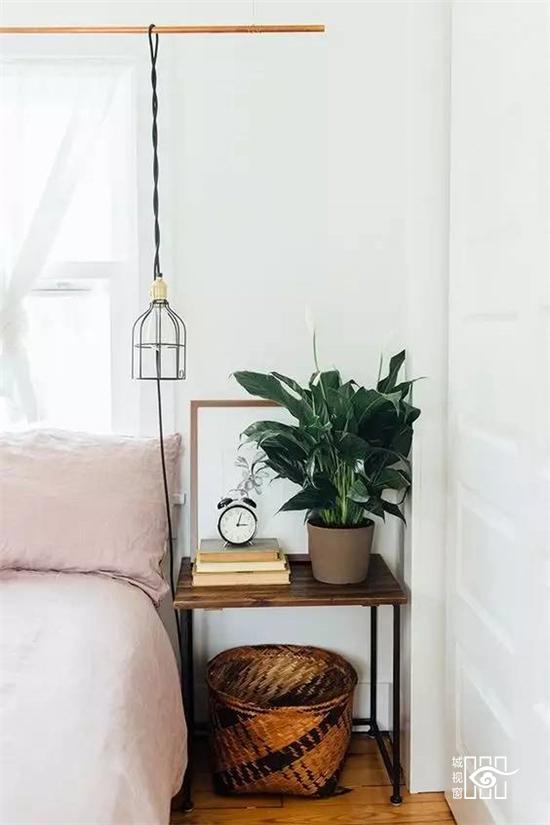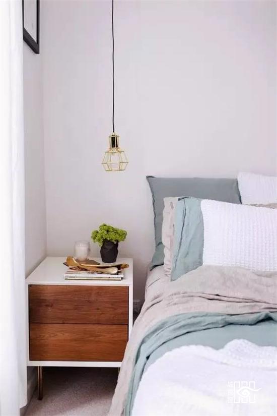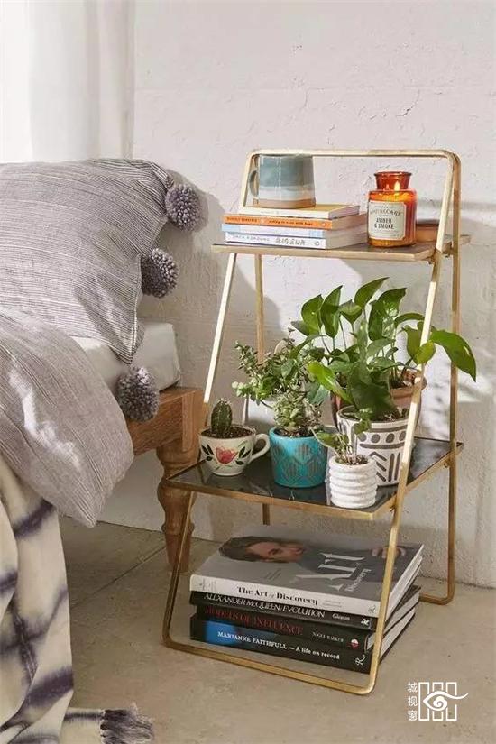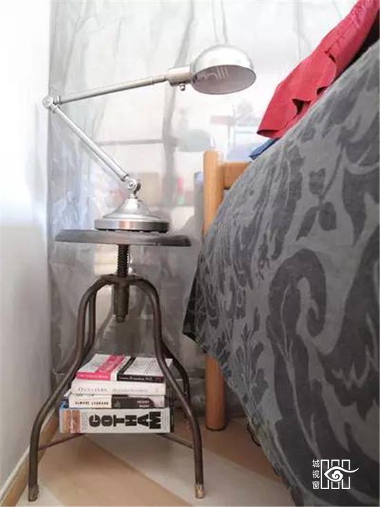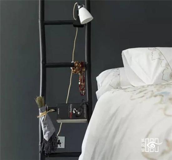 严格意义上来说,梯子并不能算是床头柜,但是这样的设计无疑给简单的卧室生活增添了一丝俏皮