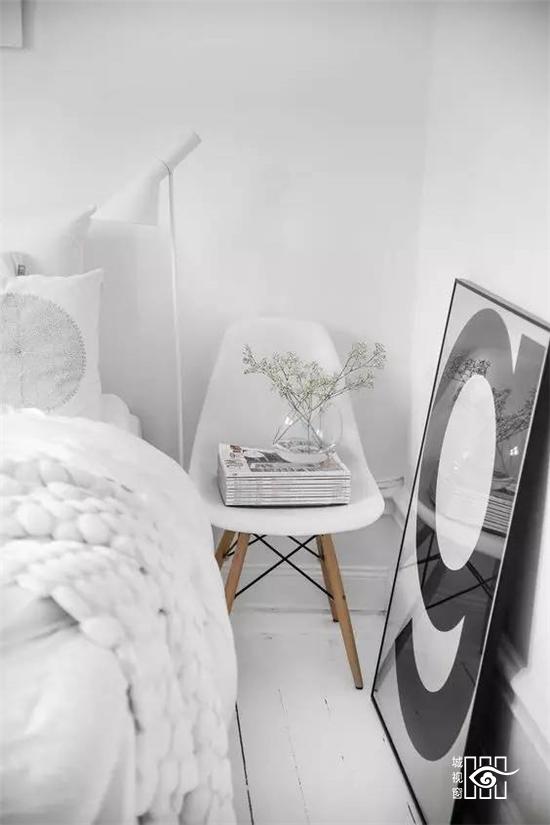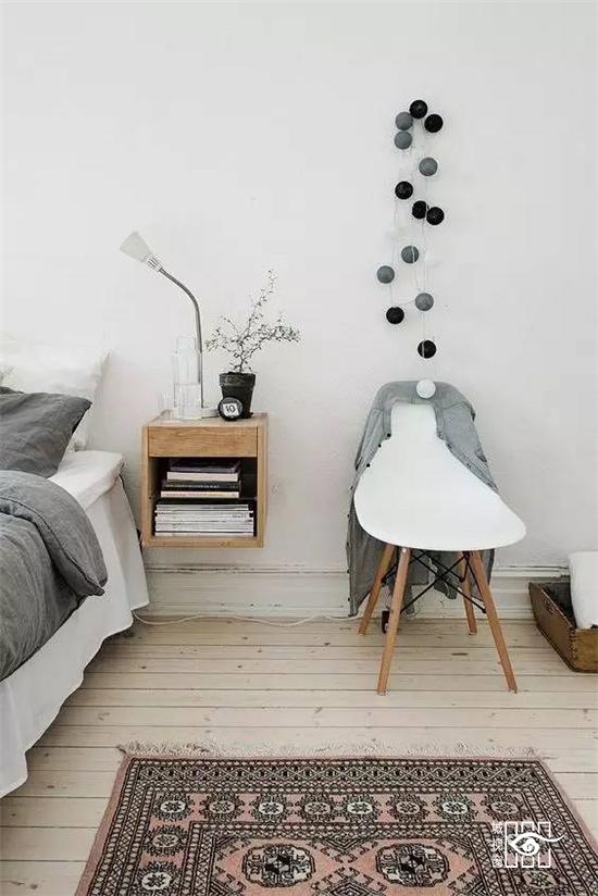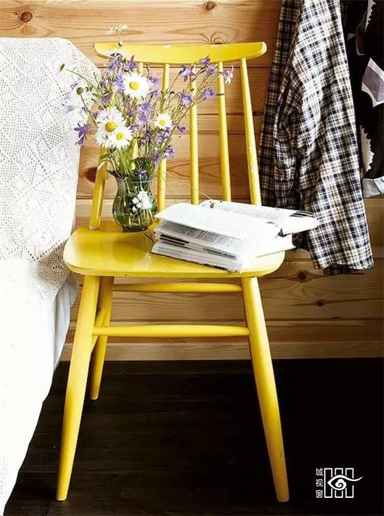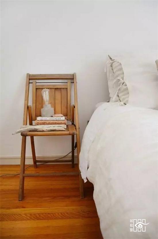 用一把椅子代替床头柜,既可以放置杂物,也可以供人休息