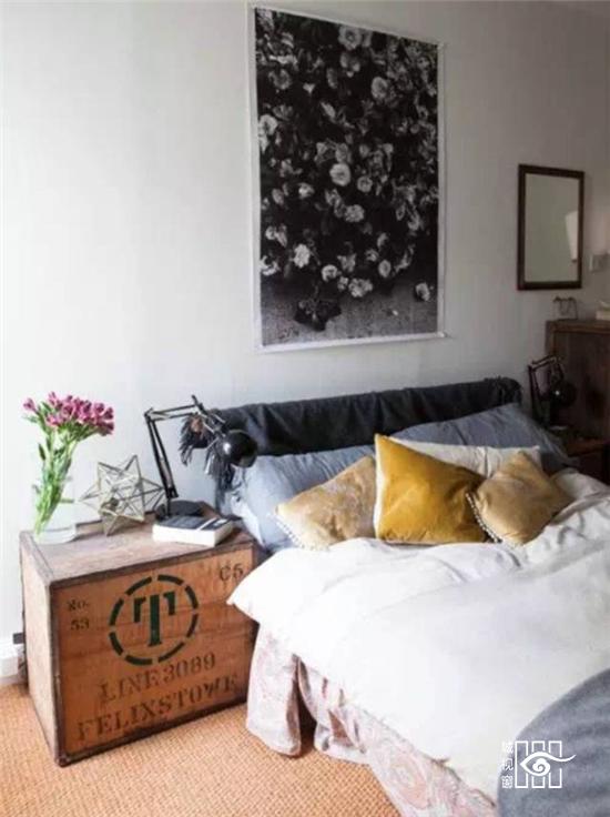 用废弃的木箱子做床头柜也不失为一种好的选择