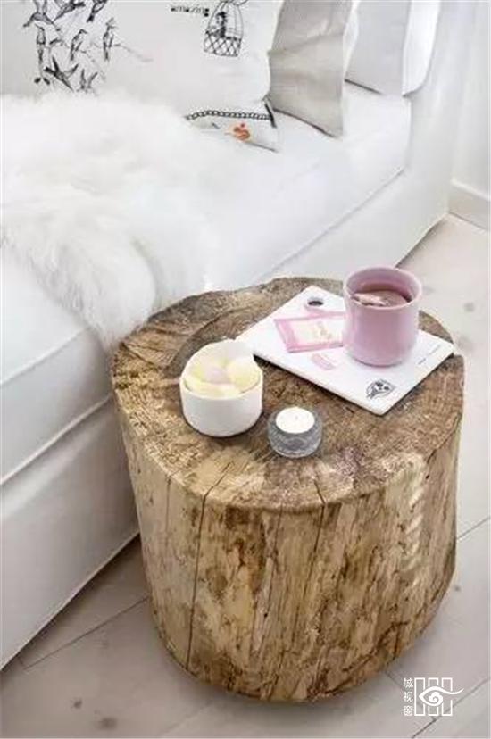 吊着一块简单的原木,这样的床头柜不仅给室内增添了美感,还让人感觉返璞归真