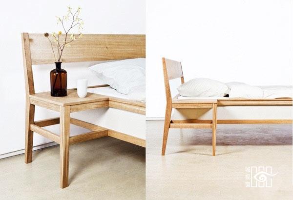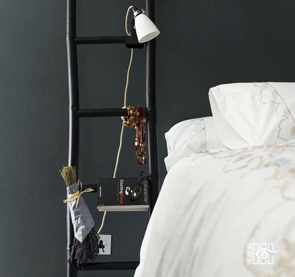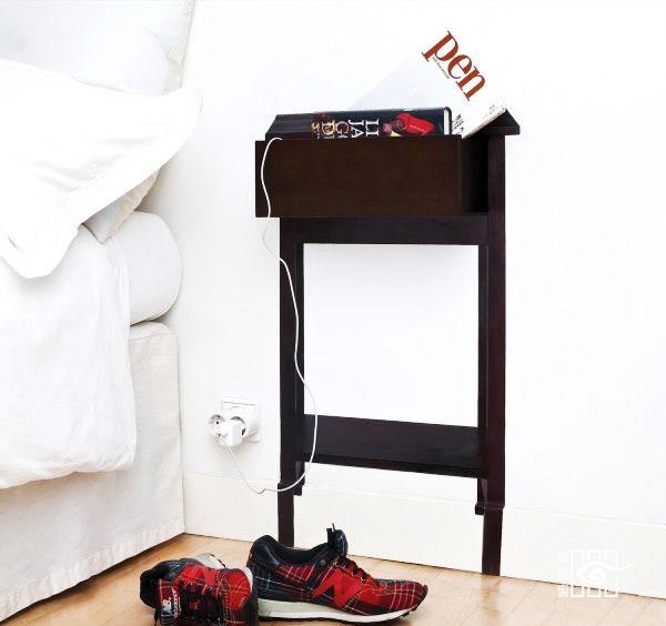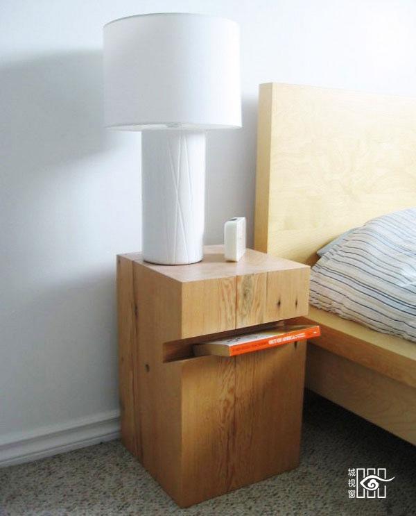 几根实木板经过设计师之手,瞬间变成个性十足的床头柜,梯形结构可分类放置不同物件。