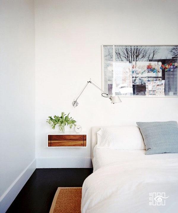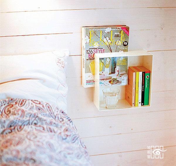 最最简单的床头柜设计,一个可存放书籍,放置零碎物件的隔板就行。