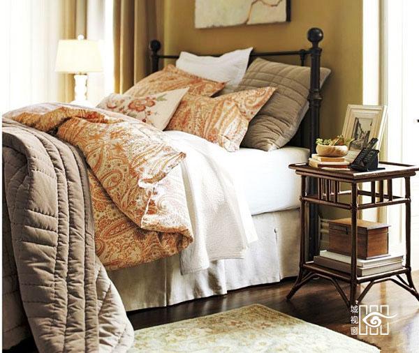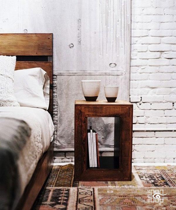 不需要太多设计,仅一个简单的方方正正回形小桌子便可作为床头柜了。