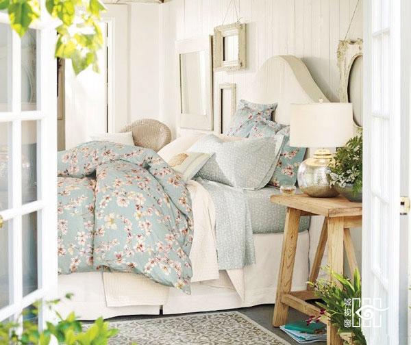 树形床头柜的设计,恰好迎合了卧室田园风的布置,尽显优雅的空间。