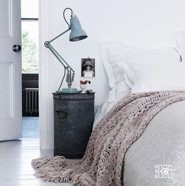 这是谁的创意?将一个废弃的邮箱变成床头置物柜,似乎给空间制造了一些惊喜。