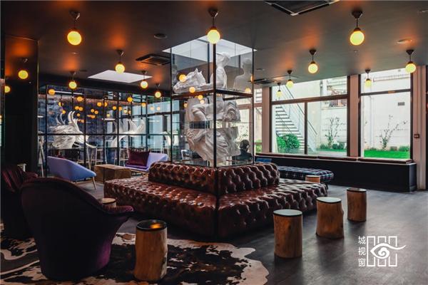 进入一楼大厅,巨大的四方形玻璃橱窗中装着各种当代艺术作品,让你以为误入美术馆。