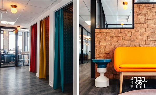 整个空间将高端家具与天鹅绒、皮具混搭起来,佐以设计前卫的墙纸、渲染气氛的照明。会议室、休息区等私密空间与大型会议室等公共区域交错穿插,创造出一种成熟干练的都市氛围。