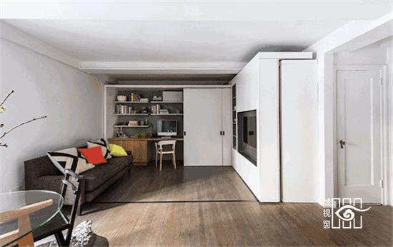 这面移动电视墙可以将整个空间隔离成五个空间
